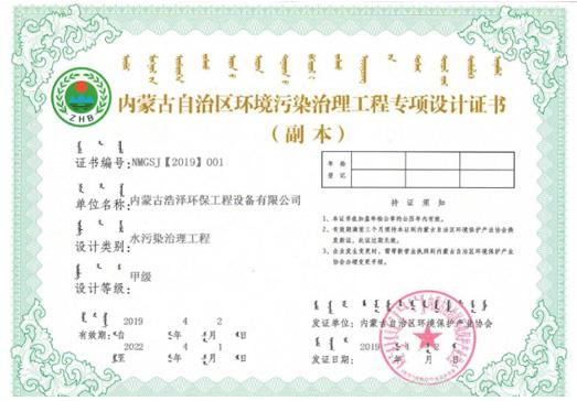 环保污染治理工程专项设计证书