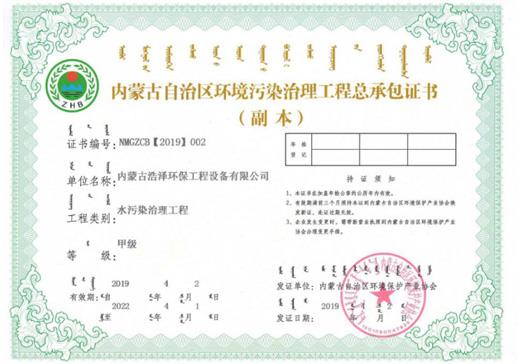 情形污染治理工程总承包证书