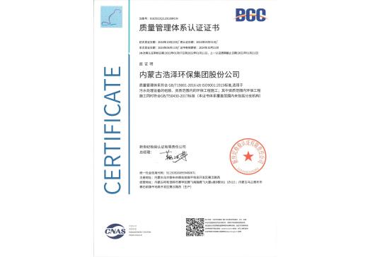 质量治理系统认证证书